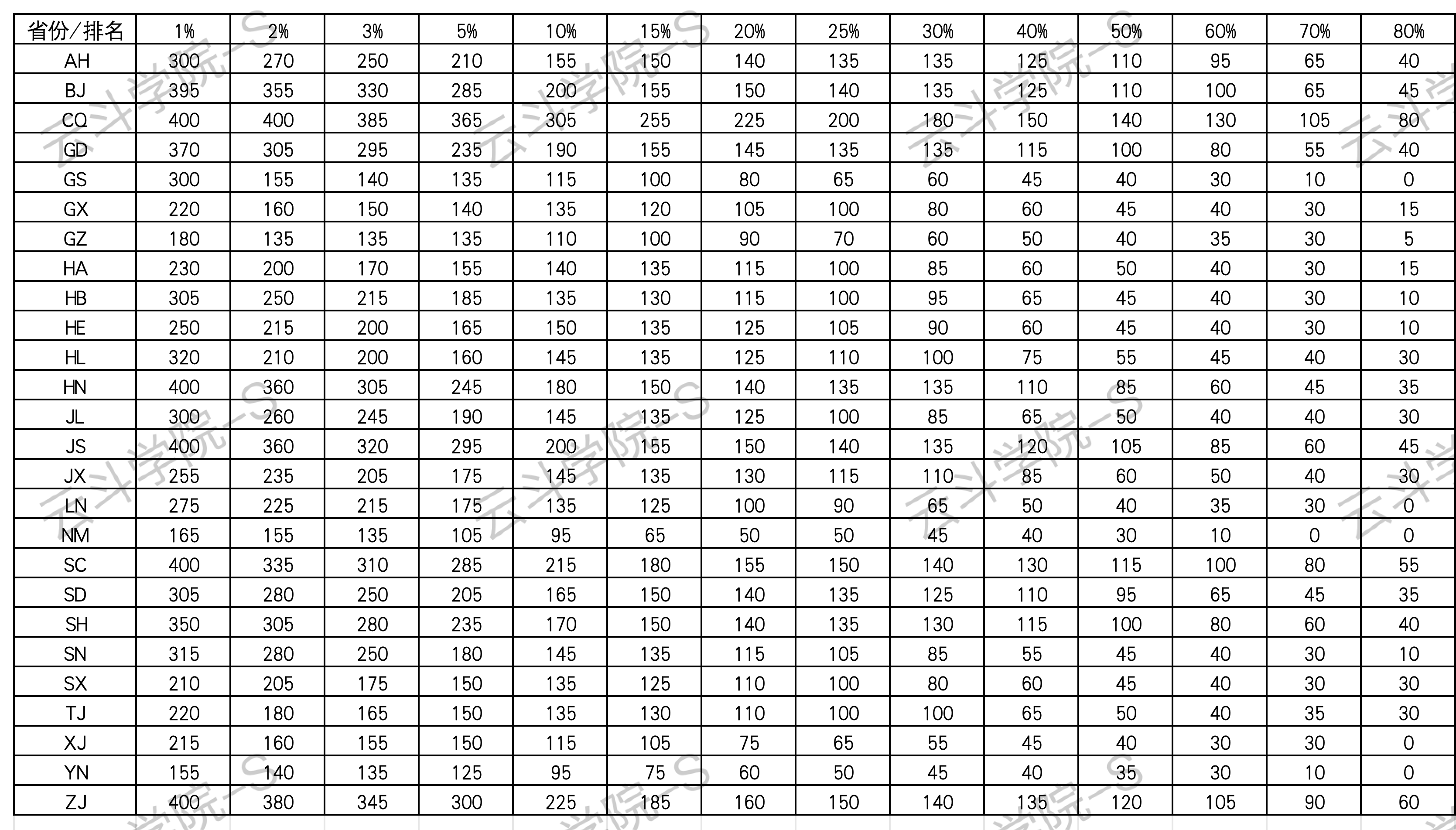 各省分数百分比(云斗学院版数据)